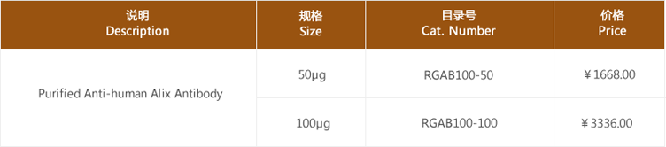 Alix protein, named also ALG2 interacting protein or PDCD6-interacting protein, is a cytoplasmic protein that interacts with apoptosis associated-proteins. Alix plays an active role in exosome biogenesis and it is a useful internal marker for the analysis of exosomal proteins with western blotting.