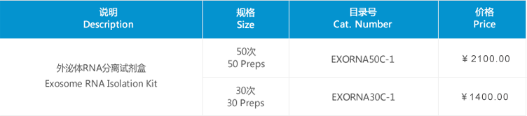外泌體RNA分離試劑盒(Exosome RNA Isilation Kit)采用酚/胍鹽方法提取已分離的外泌體中總RNA(含有mRNA和miRNA),這里外泌體分離方法可以包括超速離心、化學(xué)沉淀、免疫捕獲、分子大小排阻等,接下來(lái)采用吸附柱(Spin Columns)法方便、快捷地純化和洗脫外泌體RNAs,可直接用于下游應(yīng)用,如realtime RT-PCR,Northern Blotting,NGS 測(cè)序和microarray等。
